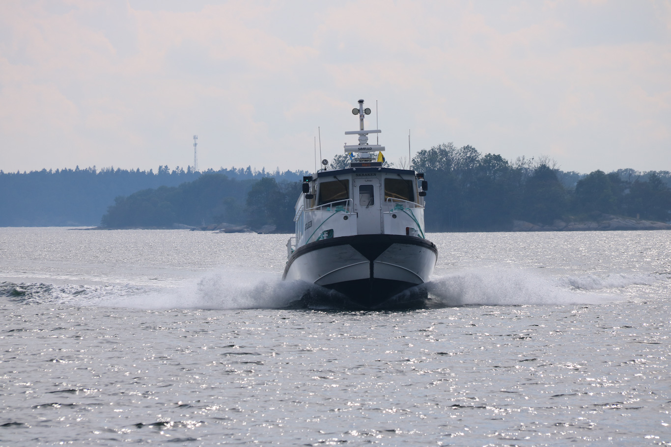 Men m/s Skraken fyller absolut sin funktion i trafiken i norra skärgården. Den ersatte en mindre taxibåt för 6-7 år sedan, en taxibåt med namn Sirena som numera trafikerar Svartån och Hjämaren med utgångspunkt Örebro. M/S Skraken har ju ett fågelnamn, och när den levererades 2016 var rederikollegan i trafiken från Furusund m/s Viggen.