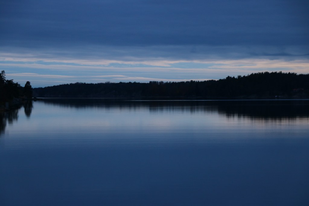 Ibland behöver man inte beskriva särskilt mycket. Blidösundets södra del i skymningen. Resten av resan blev vikt åt det sociala, så inlägget slutar då här. 😉 Resan i sig slutade vid Strömkajen kl 19:15.