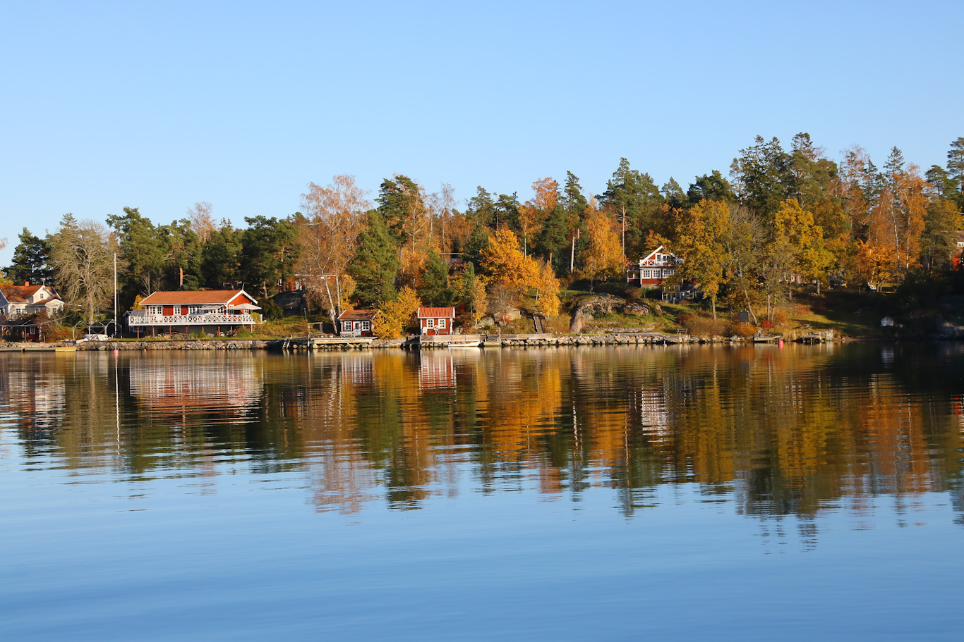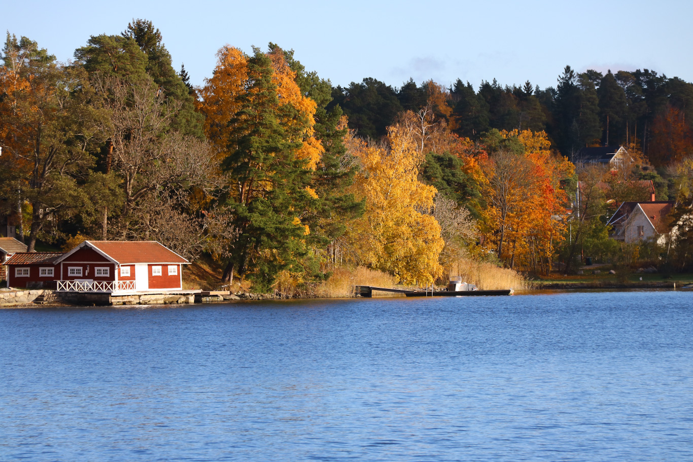 Skarpa höstfärger på Skarpö. Skarpö är en av flera ganska stora öar som omger Vaxholm, och till Skarpö kan man ta sig medelst bil faktiskt. Först vägfärjan över från Vaxholm till Rindö och därefter en broförbindelse från Rindö. Skarpö har också en brygga som används av skärgårdsbåtarna vid Skarpöborg, denna brygga ligger inne i Stegesundet.