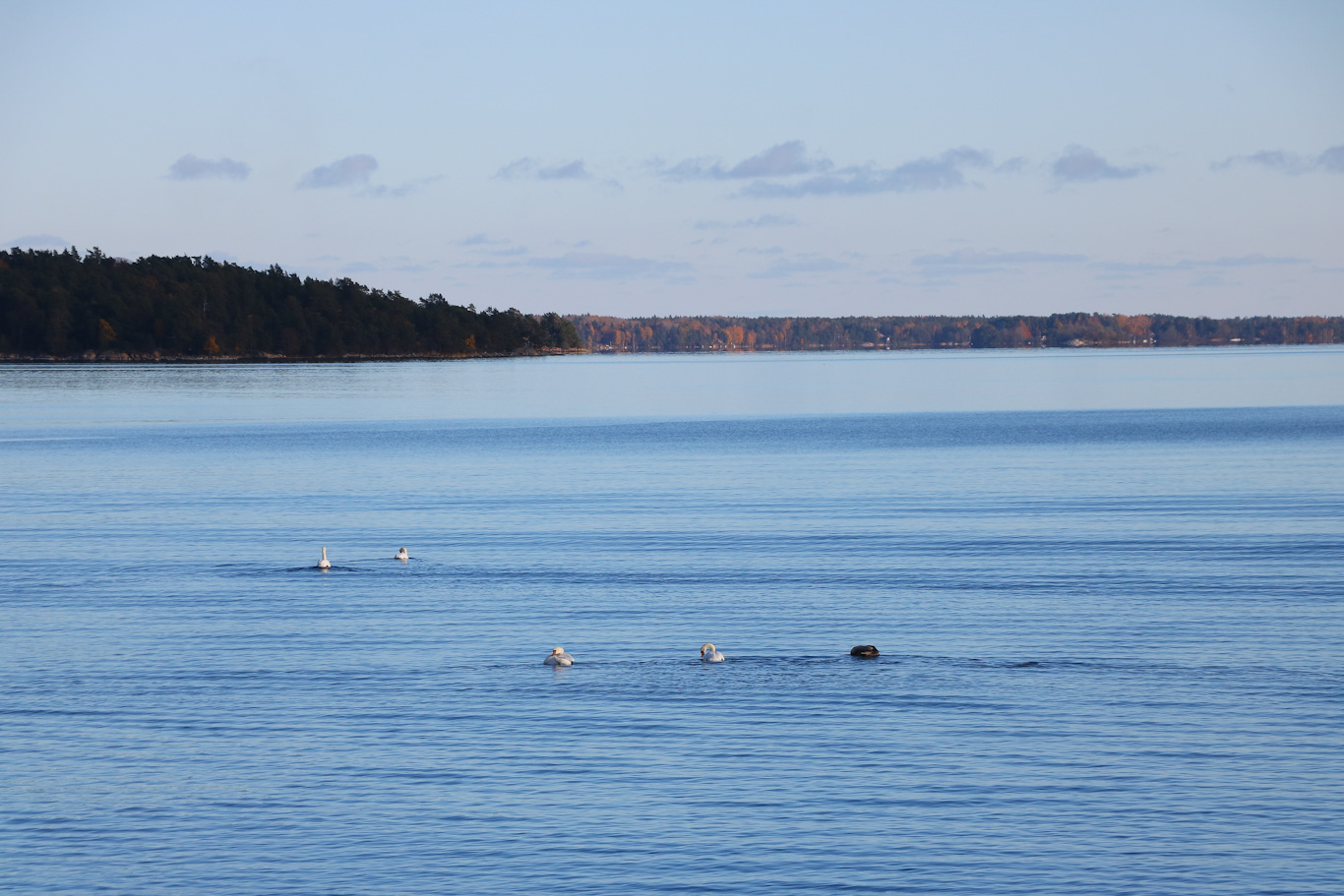 Svanmärkt utanför Vettersö med Skatfjärden i nordostlig riktning. Och landmassan längre bort tillhör den sydligaste delen av den avlånga ön Yxlan. Vagnsunda är den sydligaste byn på ön. Närmare Blidösundet byter fjärden namn till Vamban och i dess östra del mellan Själbottna och Blidö så finns ett gytter av öar. Det är också där som farleden Husaröleden, som jag nämnde i ett tidigare blogginlägg, har sin passage. På södra Blidö nära Långviken hade för övrigt Tove Jansson ett sommarnöje, en del av inspiration till Mumindalen.