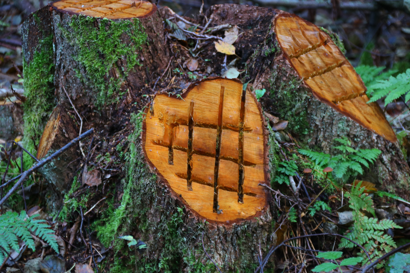 Skogsmönster. Fällda träd, och inte helt osannolikt efter stormen Alfrida som i januari 2019 gjorde stort avtryck på skärgården i Roslagen med mängder raserade träd på de låglänta öarna.