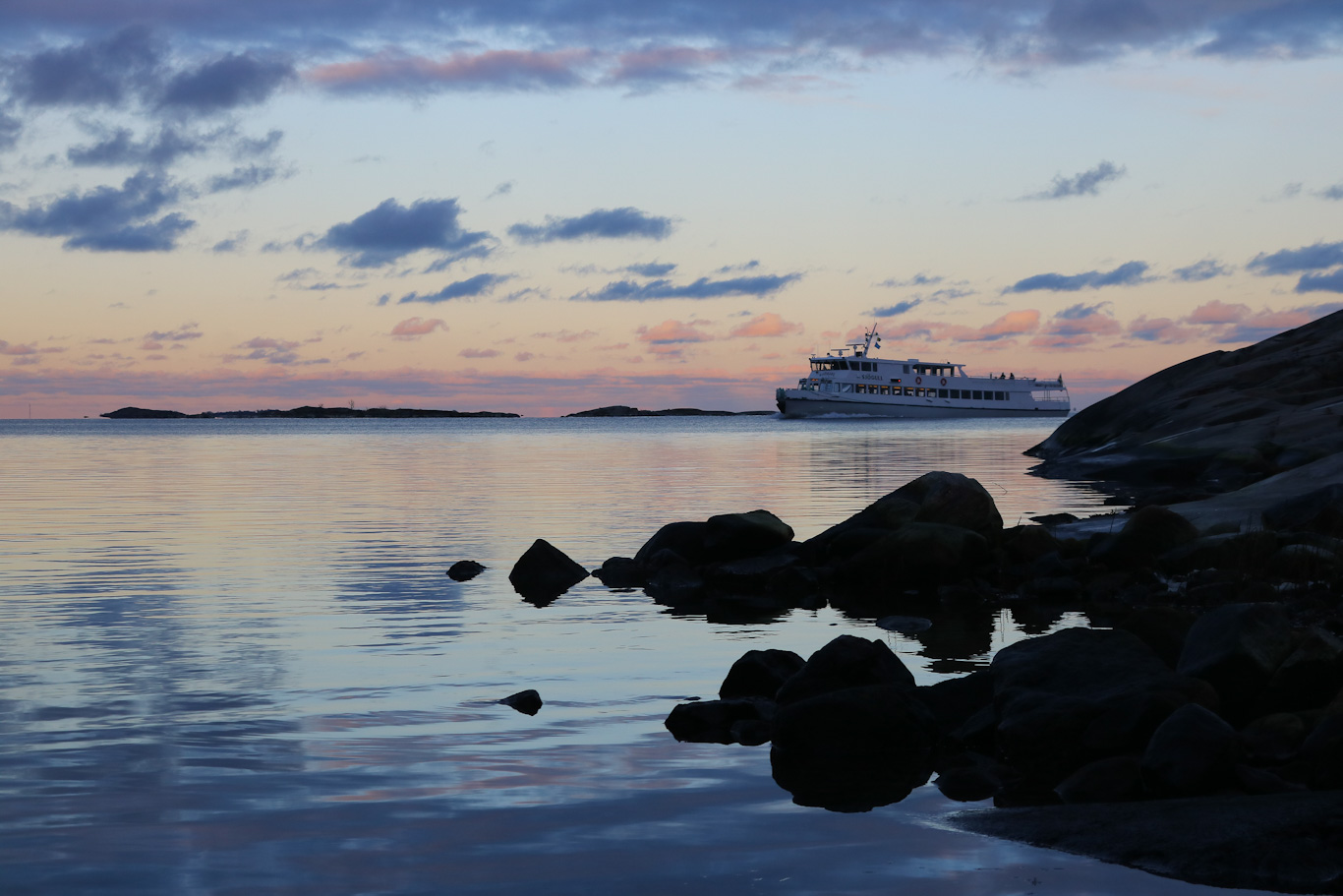 Ibland behöver man inte beskriva särskilt mycket. Blidösundets södra del i skymningen. Resten av resan blev vikt åt det sociala, så inlägget slutar då här. 😉 Resan i sig slutade vid Strömkajen kl 19:15.