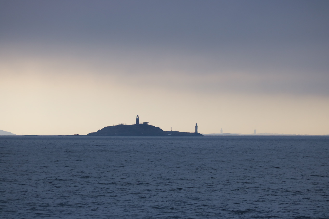 Skönt ljus här där solen kom igenom molntäcket. Här syns två öar med fyrar varav den närmsta är Mällsten, och i bakgrunden blickas den sydligaste ön som Waxholmsbolaget har trafik till – nämligen Öja med fyrplatsen Landsort. Till Landsort åker man båt ifrån Ankarudden på Torö i Nynäshamns kommun, busslinje 852 ansluter från Nynäshamn.