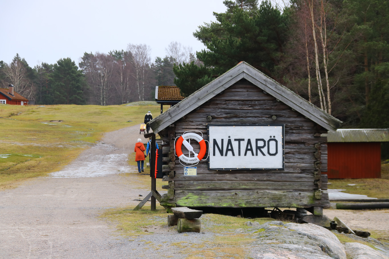 Jag var inte ensam att gå av på Nåtarö som den äldre stavningen på bryggskylten här förevisar.