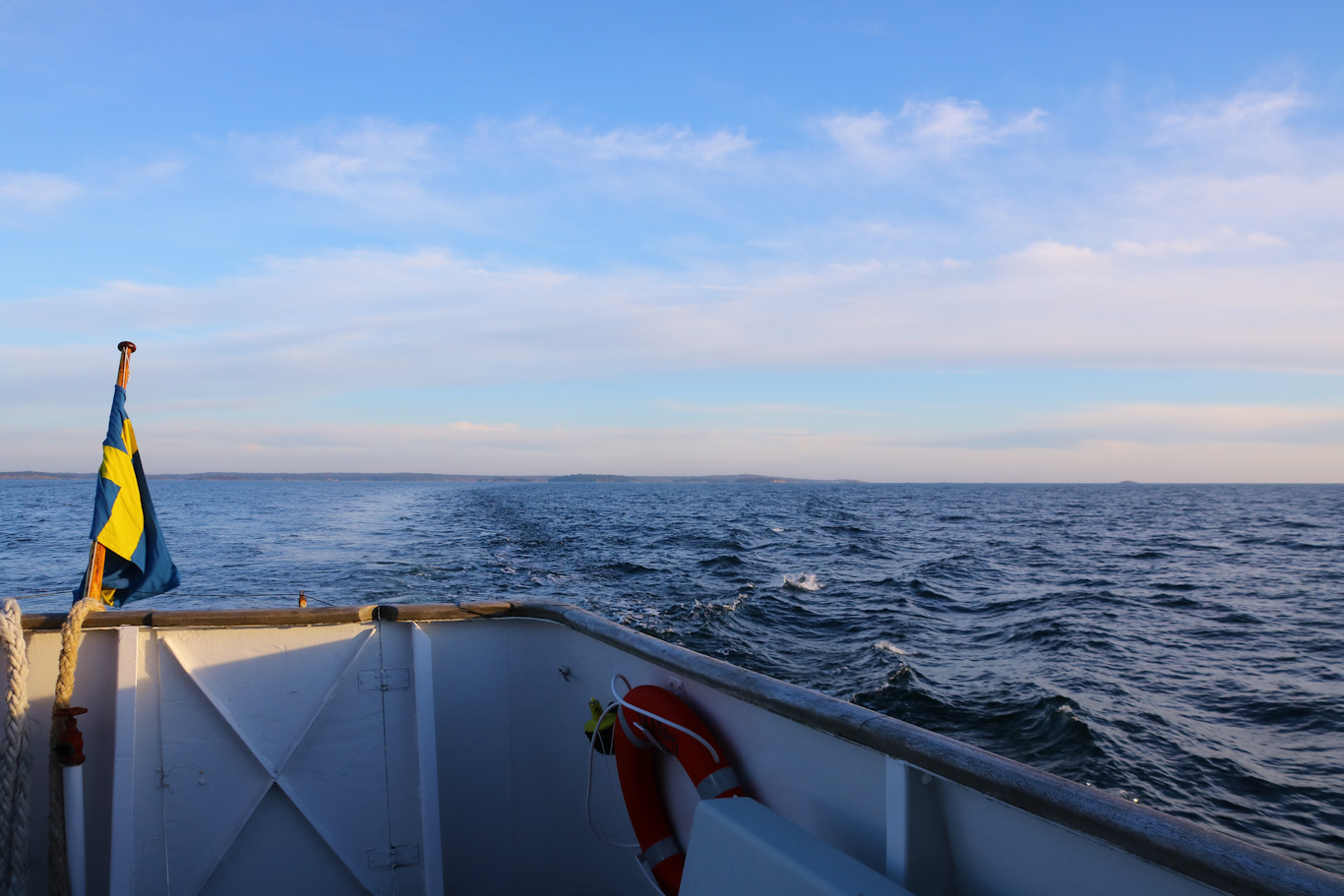 Med den sydliga vinden och en del dyningar så blev det viss rörelse under färden över sydligaste delen av Mysingen med till höger i bild Danziger Gatt som löper ut i det stora havet. Denna passage ligger för övrigt just mellan Nåttarö och Mällsten som visades på bild i början av inlägget.