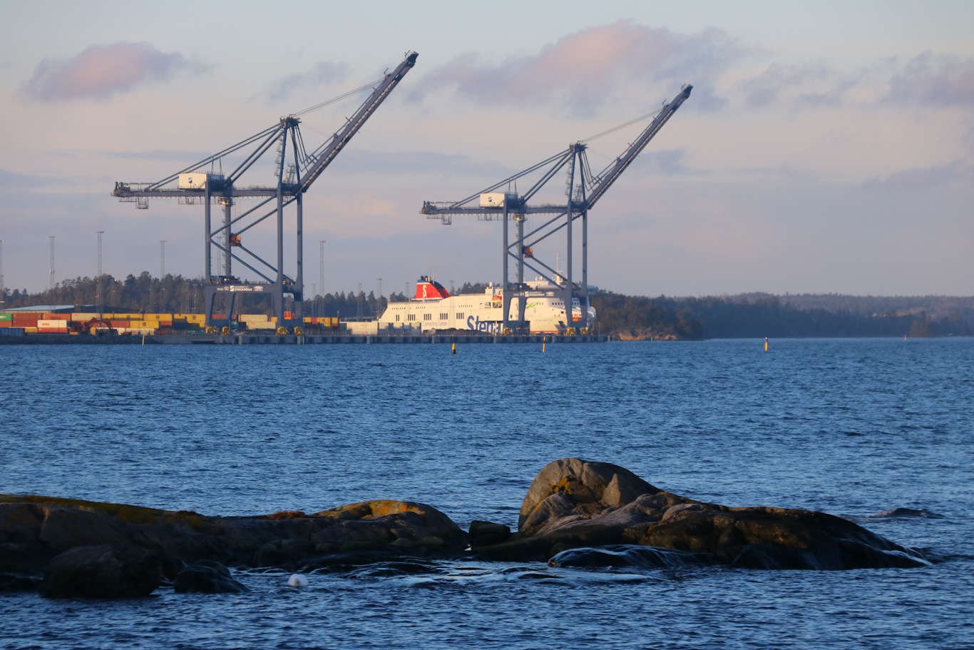 Här har vi inte Danziger Gatt, men däremot Norviks hamn. En hamn som prioriterar last med bl a containers i första hand, men fartyget Stena Baltica som på bilden ligger inne går att åka med som passagerare. Containertrafiken till Stockholm går numera via Norvik sedan denna hamn ersatte Frihamnen centralt i Stockholm år 2020.