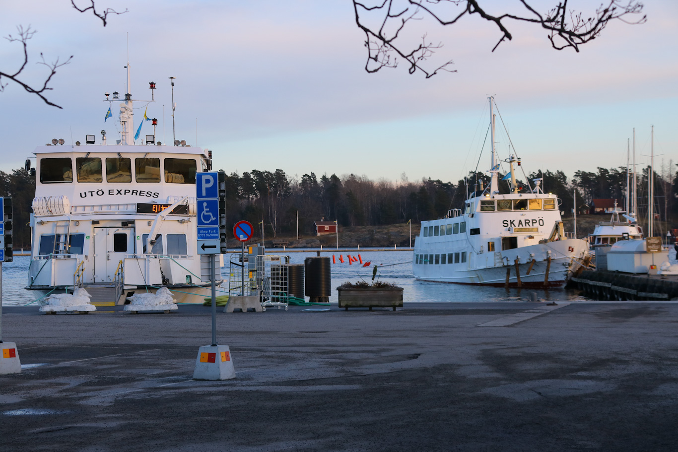 Tillbaka i Nynäshamn ca 16:15, och här syns då den till stor del av året ordinarie båten Utö Express vid kaj, tillbaka i trafik till påskveckan.