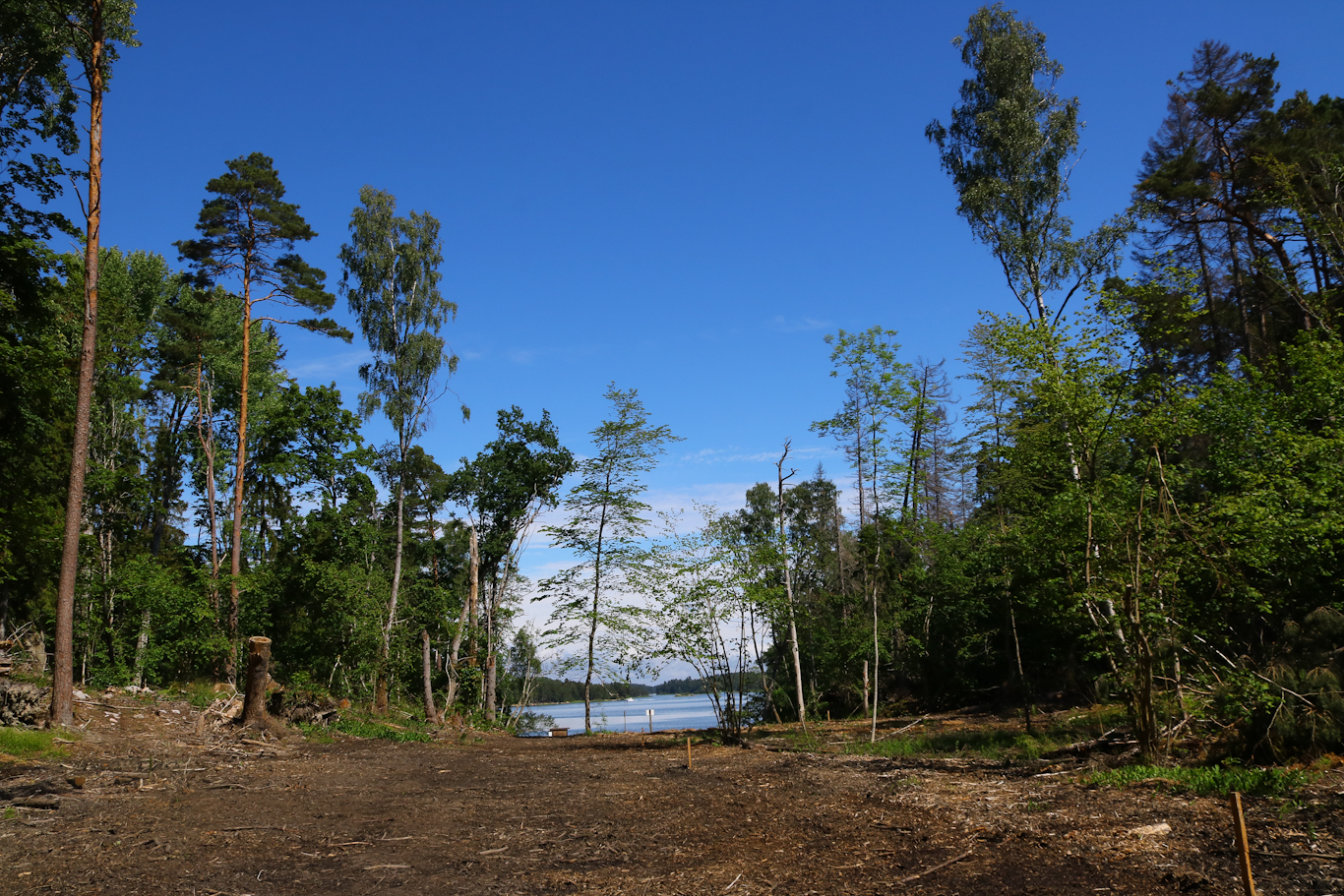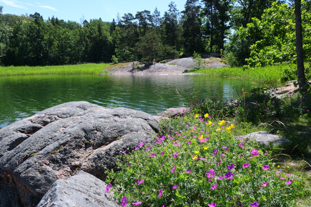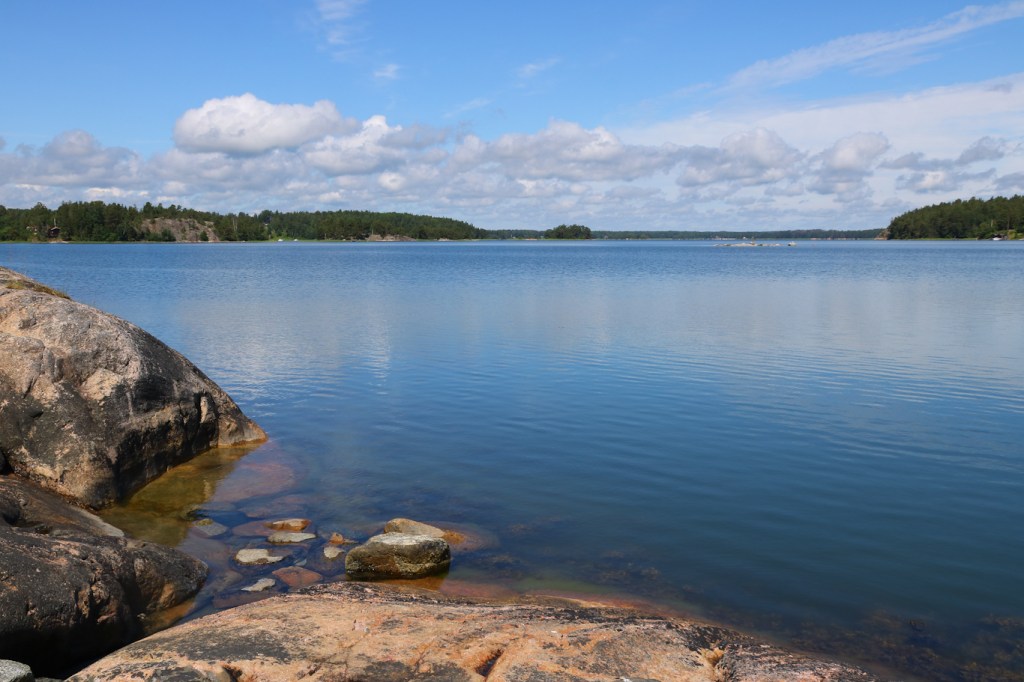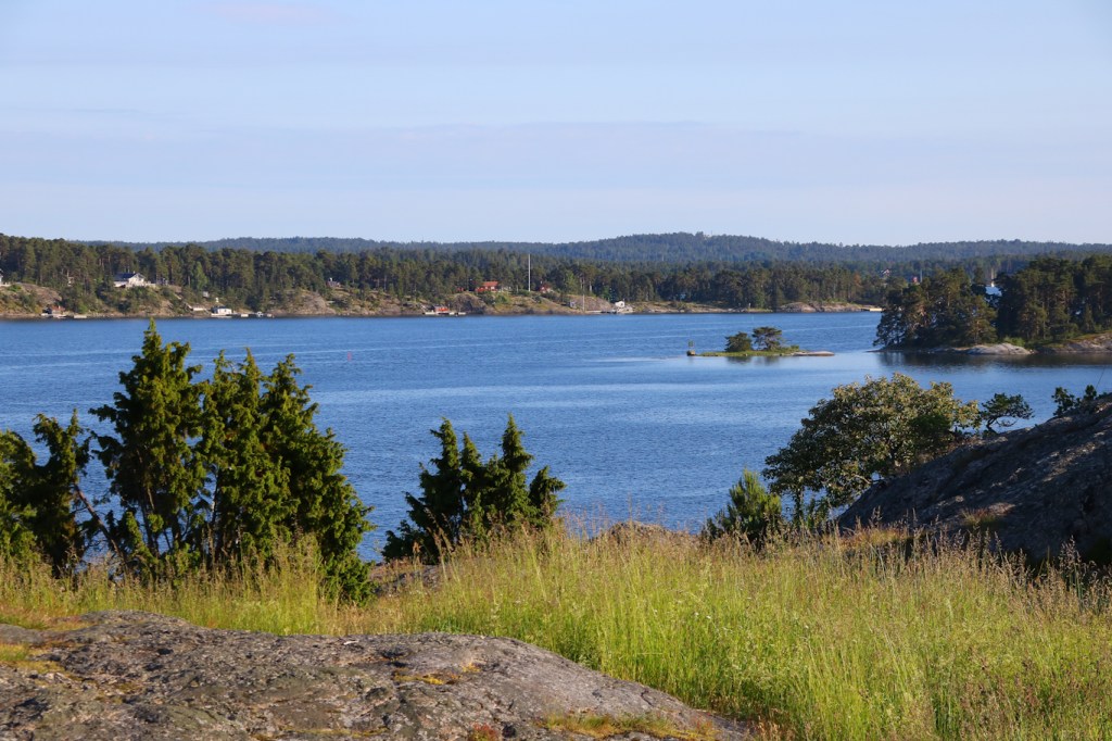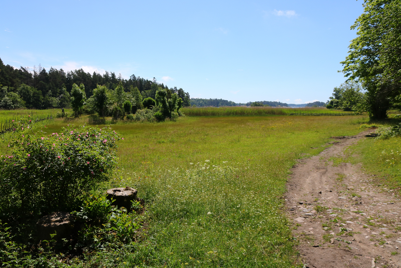 Så ut på ön och vandra litegrann. Bilden är tagen i riktning mot Hemviken och därintill torpet Hemvreten där bryggan ligger nedanför på öns sydligaste udde som inte helt ologiskt då kallas Hemudden.