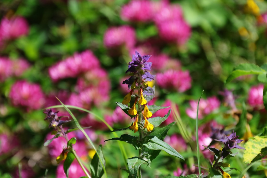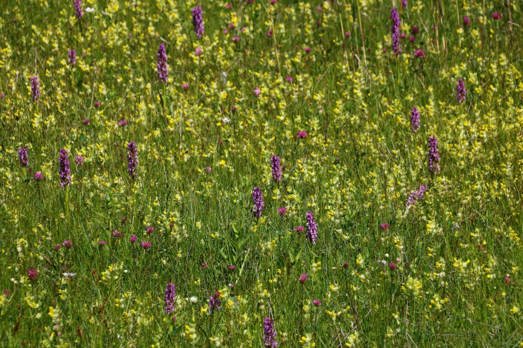 Gökärt blommar bland de torrare partierna, exempelvis vid stigen längs Långängen.