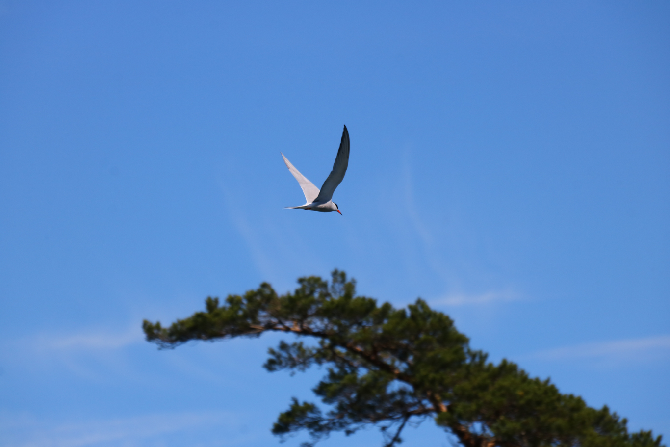 Så flög fisktärnan förbi i jakt på föda. Med svart spets av näbben till skillnad från silvertärnans helröda – om man ska skilja dessa annars lika tärnor åt.