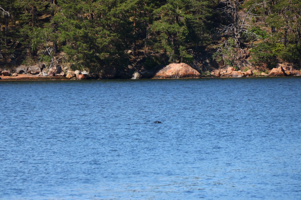 Genom dörrarna till akterdäck från stora salongen på m/s Sjögull kunde jag skåda något simmande intill Koholmen. Jo en gråsäl!