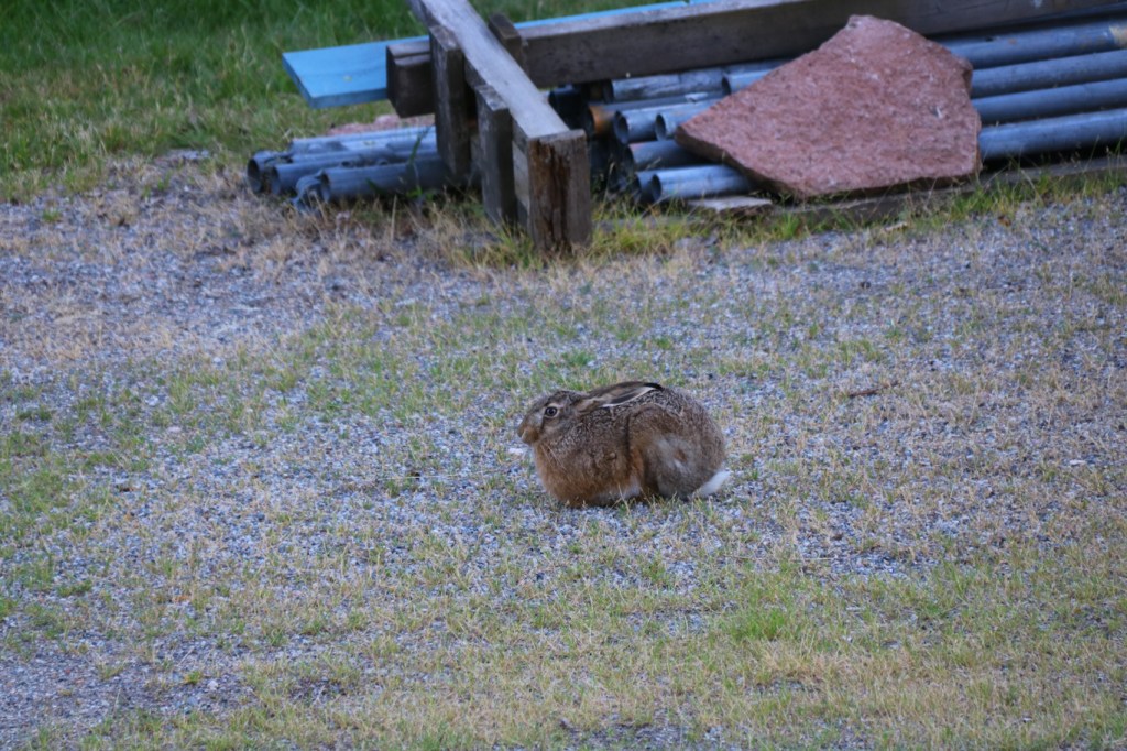 Här vilades det minsann, tills jag gick ut från huset… 😉 Fälthare på tomten. På tal om vilt så sågs på hemvägen från Dalarö till Lidingö såväl rådjur, älg och räv. Sistnämnda knatade över en villatomt inte långt från Näset. Älgen stod vid ett av alla fält längs Dalarövägen, och där ser man nästan alltid ett och annat rådjur.