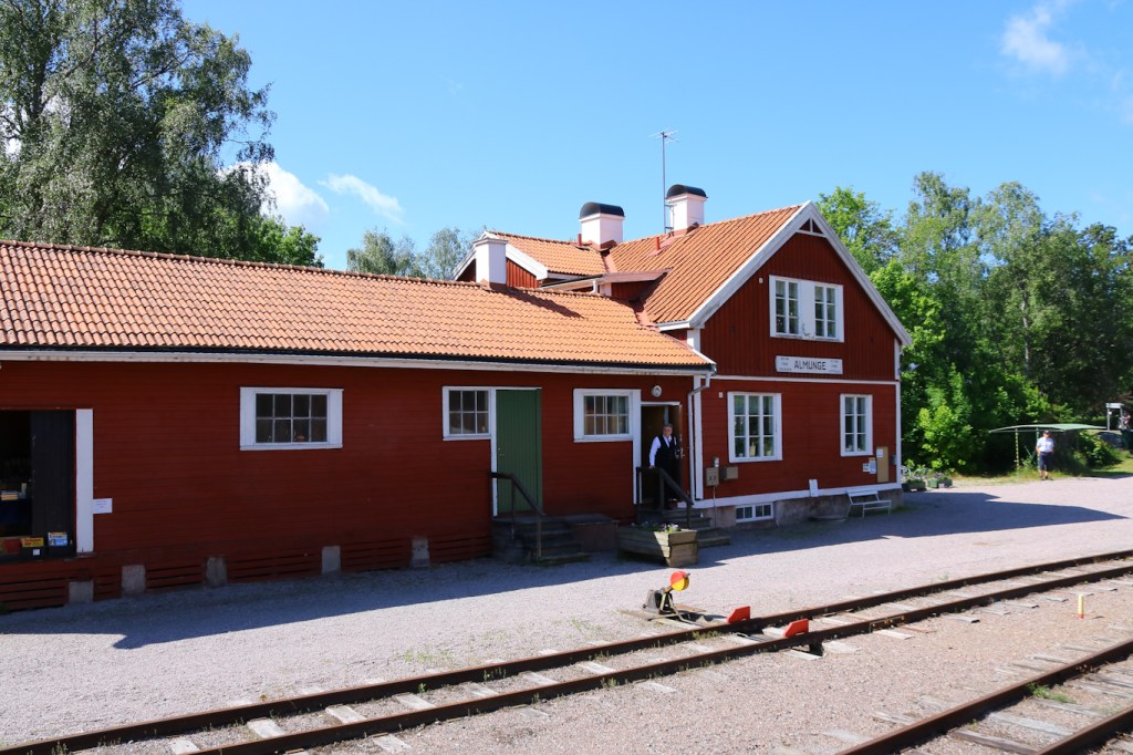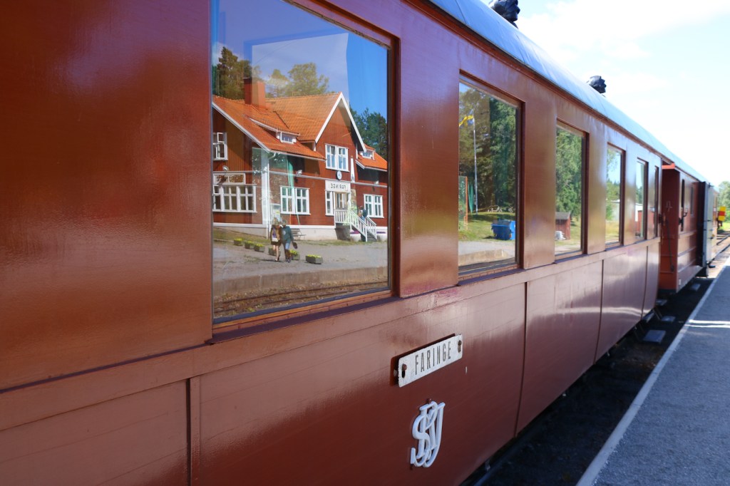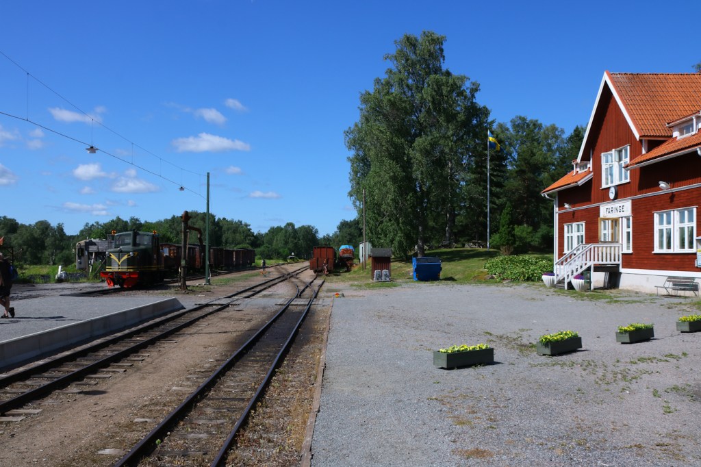 Längst ut på linjen, efter 33 kilometers åkande, så nåddes Faringe station. Här finns lokstall och vagnhallar i området.
