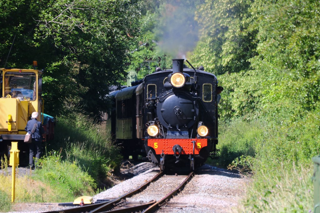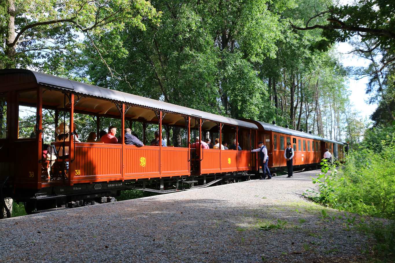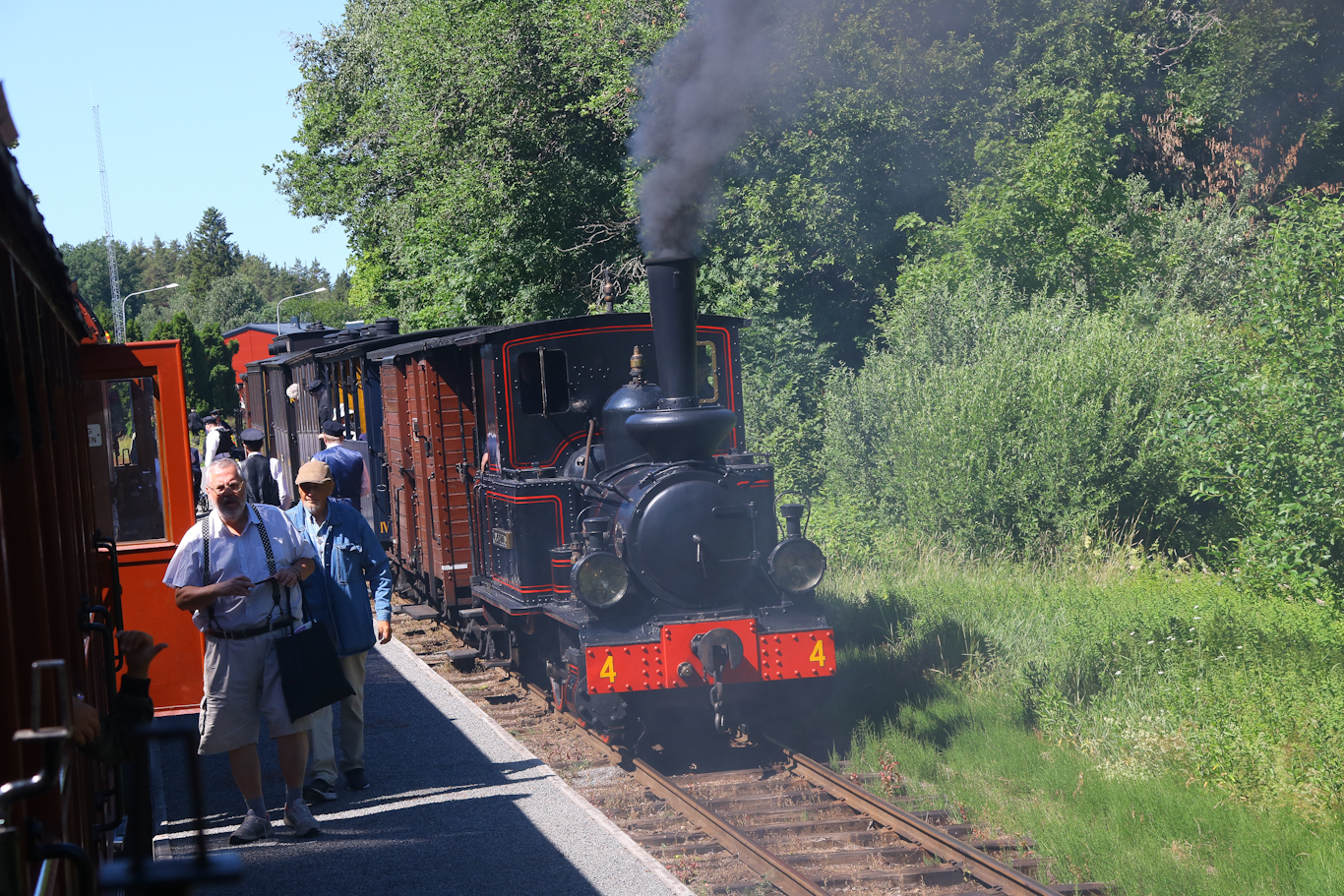 Vid Marielund möttes det lilla ångtåget. Speciellt för Lennakattens dag är att det lilla ångtåget är ute och kör. Med ångloket BLJ 4 Långshyttan från 1897 som drar vagnarna från samma tidsepok. Här syns bland annat en tredje klass-vagn med ursprung från Mönsterås-Åseda Järnväg i Småland.