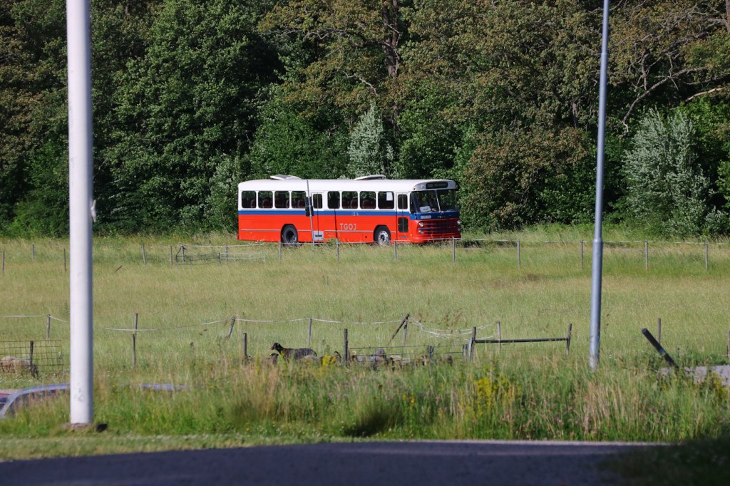 Veteranbuss anslöt vid station Selknä för resenärer mot Fjällnora. Väl framme tog vi oss ett bad i Trehörningen och därefter en måltid på serveringen intill innan vi åkte tillbaka med denna buss ursprungligen från TGOJ (Trafikaktiebolaget Grängesberg-Oxelösunds Järnvägar) som här på bilden ankommer Fjällnora på en av dagens turer.