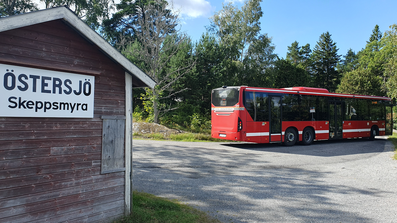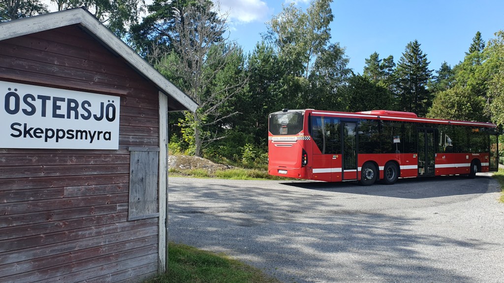 Östersjö ligger inte så långt Östersjön faktiskt. Skeppsmyra är den närliggande lite större byn på södra Björkö. Det här var alltså sluthållplats för 636:an som hade några minuters paus innan tillbakafärd mot Norrtälje, en resa på nästan två timmar.