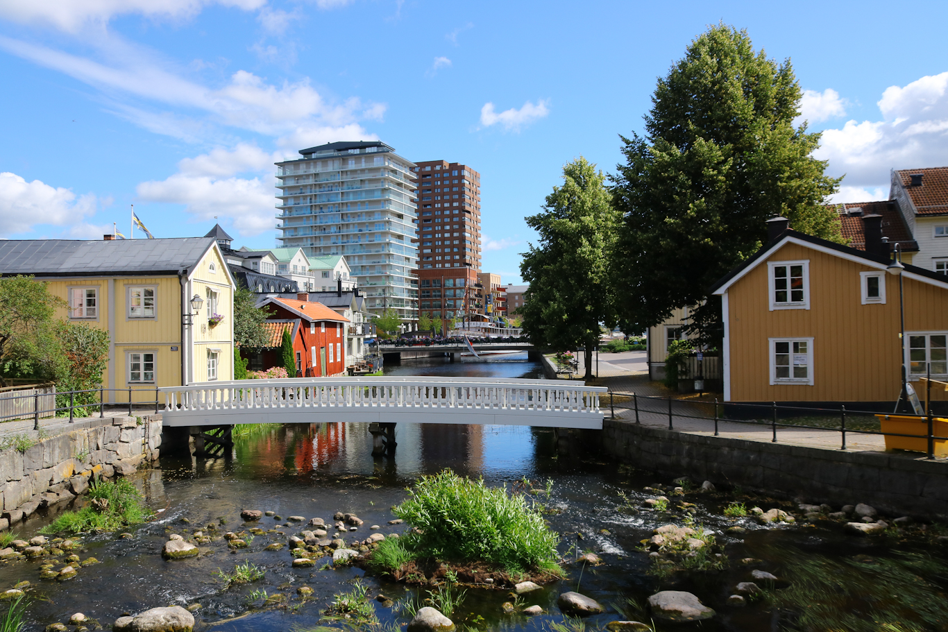 Kontrasternas stad med den nya bebyggelsen i gamla hamnområdet och så den pittoreska träbebyggelsen längs en del av Norrtäljeån. En knapp timme hade jag som tid för ”bensträckare” i Roslagens huvudstad. Där höghusen numera tar plats stod tidigare en silo så höga byggnader i det området är inte helt ovant.