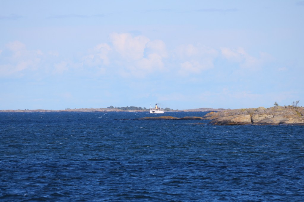 Så dök en ångbåt upp på Havssvalget. Ångfartyget Blidösund som varit på besök i Söderarms skärgård denna lördag, passerade nu genom Norrarms skärgård på väg tillbaka till Norrtälje. Utskärgårdsturerna i år har utgått allihopa från just Norrtälje, tidigare har man utgått även från Furusund, Blidösundet samt bryggor vid Ljusterö.