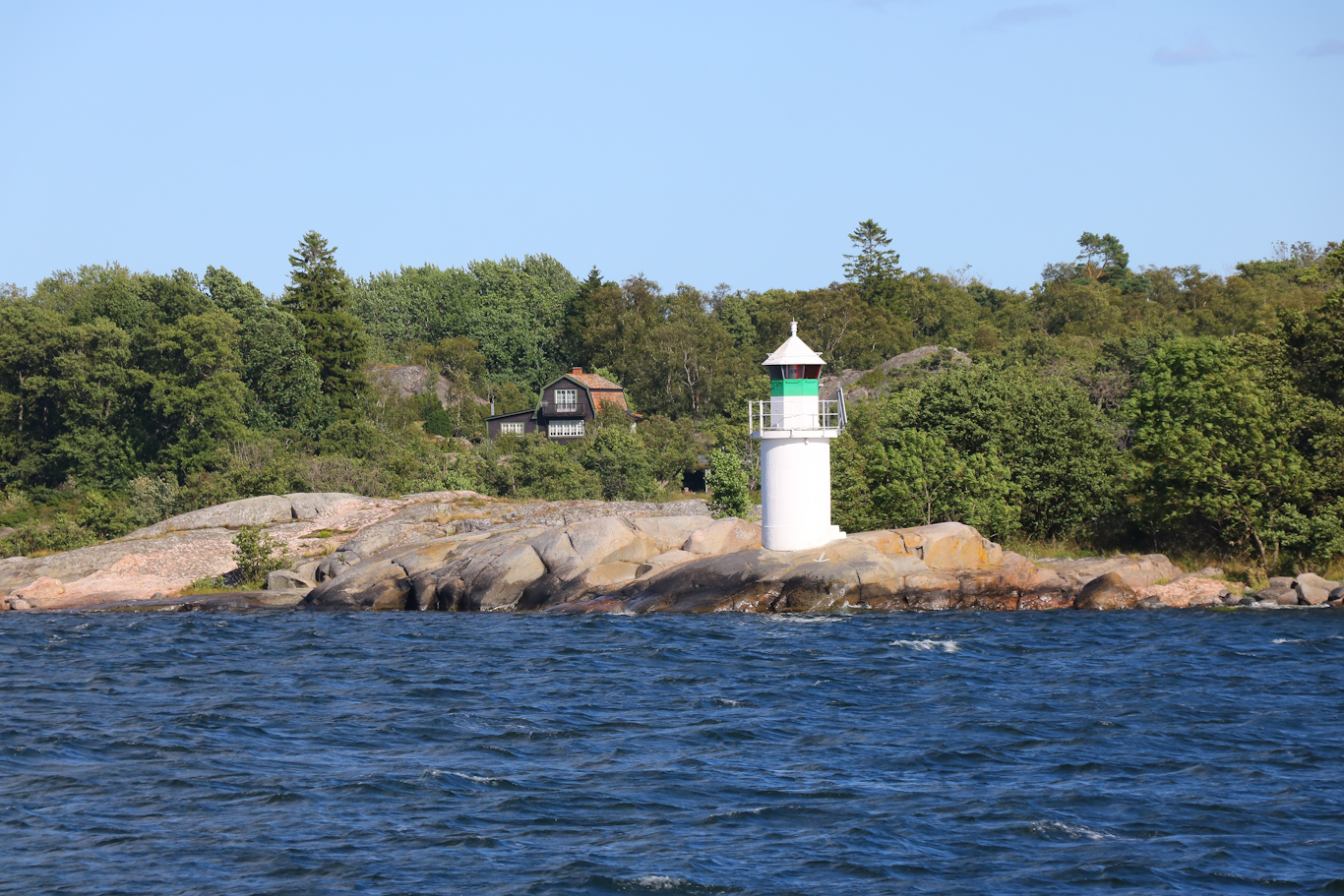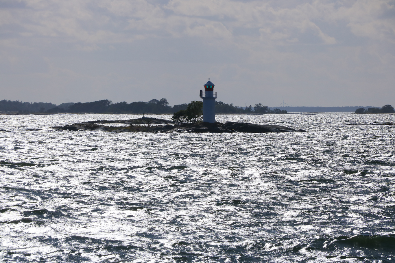 Om Arholma har en båk så ståtar Söderarm en fyr, om än inte längre aktiv sådan. Ute på Torskär finns i alla fall denna fyrbyggnad från 1839, och det var där ute som s/s Blidösund alltså var på dagbesök. Och när det nu benämns Söderarm så ligger fyren och arkipelagen söder om farleden där de större fartygen trafikerar. Åker ni med Finlandsfärja till/från Stockholm så passeras Söderarm inte långt utanför.