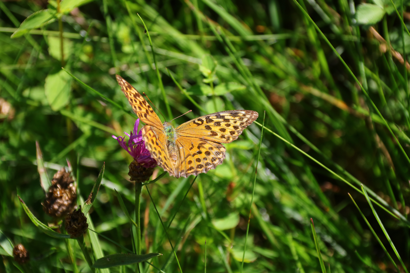 En och annan fjäril bredde ut sina vackra vingar. En silverstreckad pärlemorfjäril visar bilden.