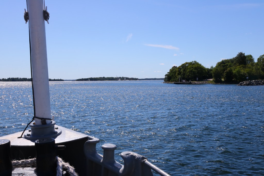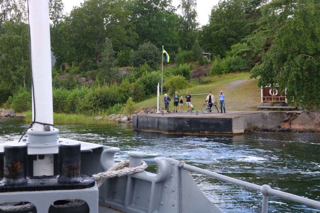 M/S Romina lämnar Lidö för vidare färd mot Fejan, ön med tidigare kolerasjukhus och karantänstation. Ankomst till Lidö kl 10:00 så överfarten från Räfsnäs är inte särskilt lång.