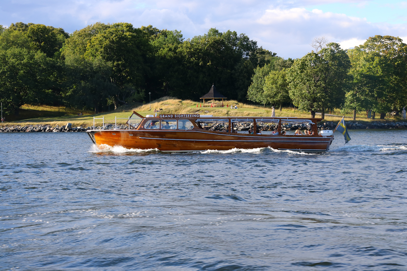 Ett till i år nytt tillskott till den stora skara sightseeingbåtar som trafikerar centrala Stockholm. Denna vackra träbåt kommer ifrån Karlstad där hon kört i båtbusstrafiken på bl a Klarälven och utåt Vänern.