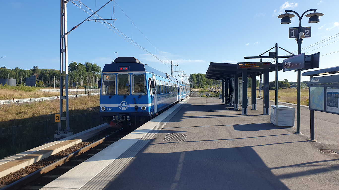 När man ska resa ifrån Lidingö på helgmornar med halvtimmestrafik på linje 203 så är det inte alltid de mest tidskomprimerande alternativen…Så för att spendera tid Östra station/Tekniska Högskolan så kunde jag hoppa tåget mot Österskär och åka upp till Arninge. En sedan några år ny bytespunkt i nordöstra Täby mellan olika busslinjer och då Roslagsbanan. Dessutom med ett köpcentrum på västra sidan om motorvägen, där stationen för Roslagsbanan ligger på den östra sidan. Och på den östra sidan om E18 låg också bussläget för resa mot Norrtälje dit jag skulle fortsätta med busslinje 676.