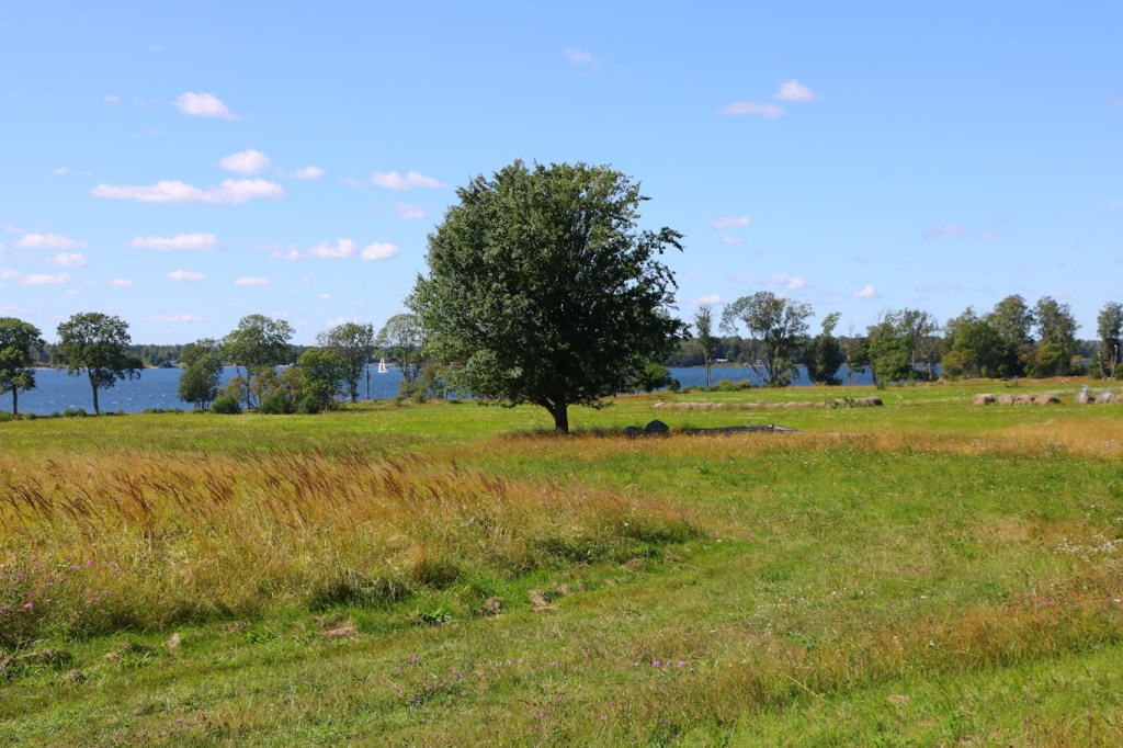Den storslagna öppna miljön intill pensionat Västergården, med ängsmarker och odlingslandskap. Jag är väldigt förtjust i denna ö Lidö, och har ju bloggat tidigare om den. Detta trots att den drabbades hårt av naturens framfart för några år sedan när stormen Alfrida rev ner en stor del av öns barrskog.