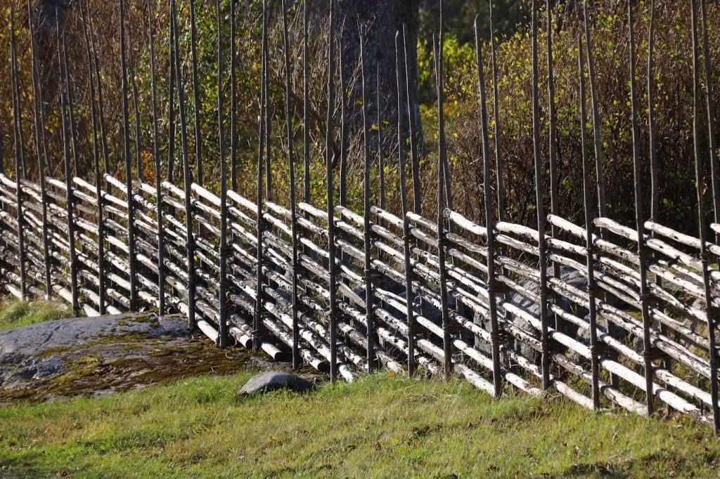 Snickargården omges av detta läckra hantverksbygge i gärdsgård.