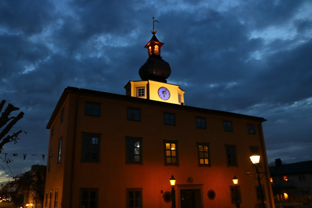 Jag klev av i Vaxholm klockan 17:15 för intagning av middag på en pizzeria på Hamngatan. Gick sedan förbi Rådhuset i skymningstimmen innan jag fortsatte med båt in till Stockholm.