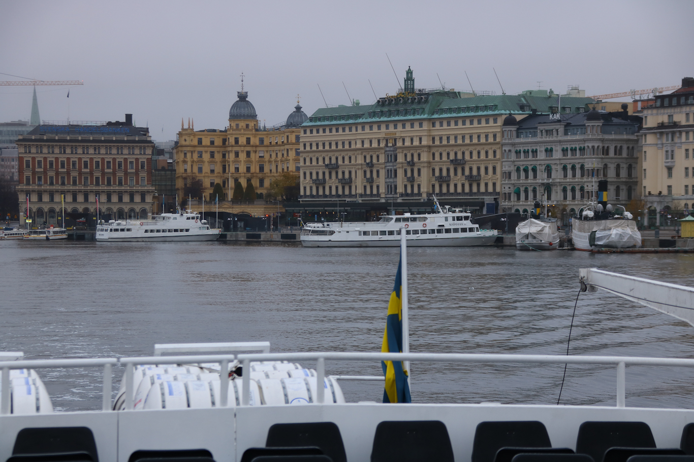 Avgångstid från Strömkajen, nedanför Grand hotell, var klockan 09:00 och vi efterlämnade de vinterupplagda klassiska fartygen samt de i trafik m/s Sjögull och m/s Mysing. Den förstnämnda hade ett par timmar tills dess avgång kl 11:00, medan m/s Mysing körde i vanlig ordning på SL-linje 83 mot Rindö med avgång kl 10:00.