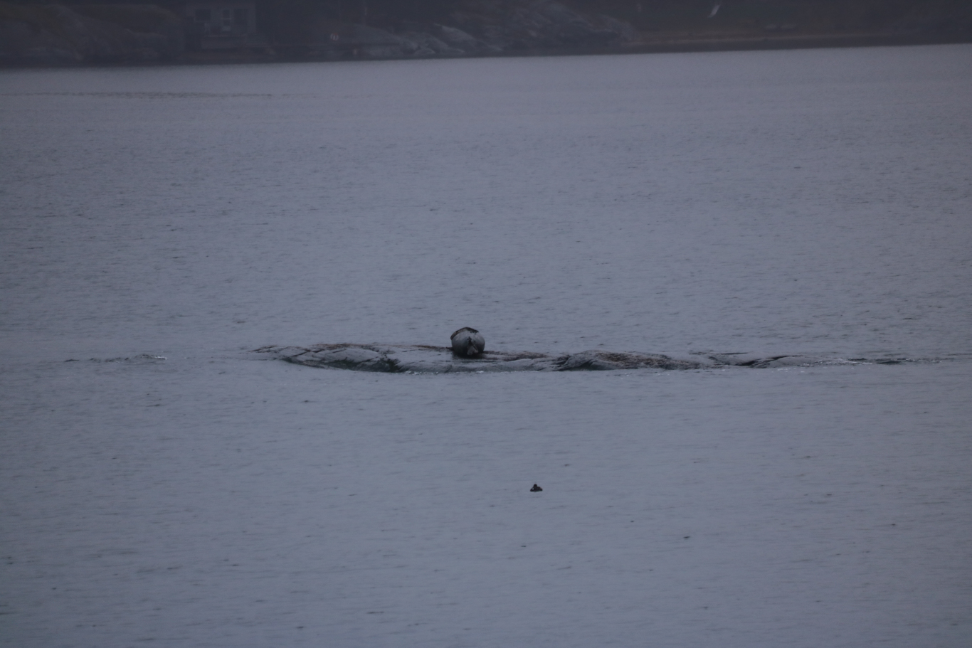 Vilostund för gråsälen tills svallvågorna från m/s Sjöbris drog in.