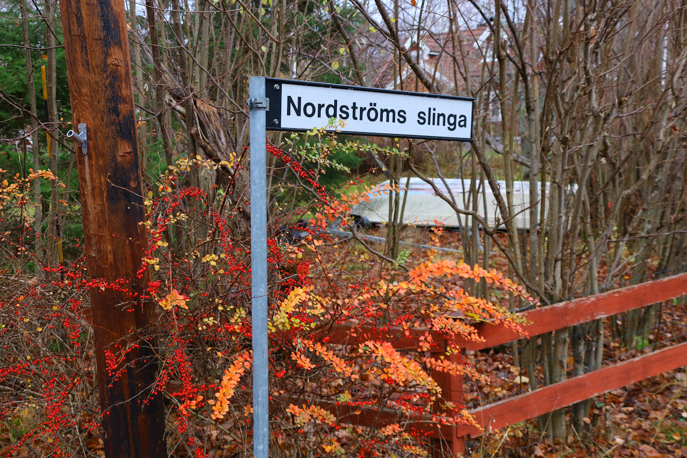 På väg upp till busshållplatsen passerades Nordströms slinga med färgglada buskar.