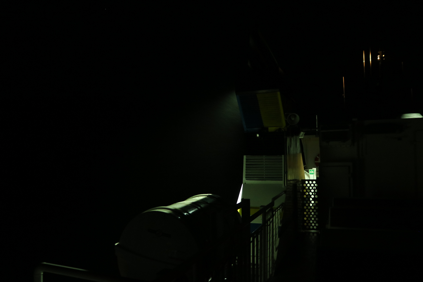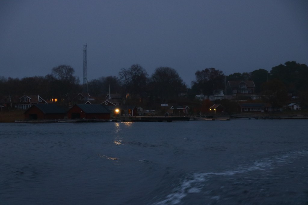 Kontrasten mot innerstadens belysningar är slående ute i skärgården. Här blir det mörkt när det blir mörkt. Det syns kanske inte (jasså!) men här passerade vi genom Staveström med tillägg vid Örsö. Ja vi la även till vid Norra Grinda som en av två bryggor på Grinda som ju är ett fint utflyktsmål dit många reser under sommaren för bad, övernattning, naturupplevelse och/eller besök på värdshuset.