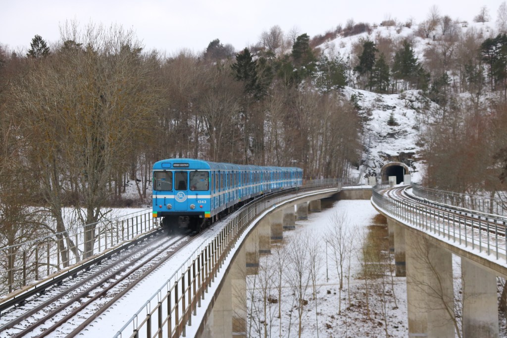 Den 10 februari så gick sista resan med den gamla typen tunnelbanevagnar i Stockholms underjordiska kollektivtrafik. Fast på en hel del ställen så går ju tunnelbanan faktiskt över jord, som här vid Vårby gård där tåget lämnade på väg mot Mörby Centrum (lite ovanligt då alla tåg i övrigt från Alby och Norsborg går mot Ropsten i norra ändan). När jag var liten så blev jag alltid besviken när jag fick åka en grön vagn och inte en blå!