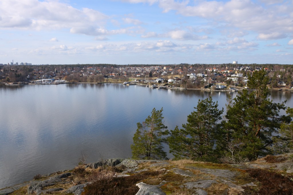 Vandring längs Booleden på påskafton blev en trevlig upplevelse där jag avslutade uppe på Telegrafberget med vy mot min favorit-ö – nämligen Lidingön. 😉 För att komma in på Booleden så utgick jag från busshållplats Kihls gård som ligger längs gamla Värmdövägen i utkanten av Orminge, och stack sedan upp på Himlaberget.
