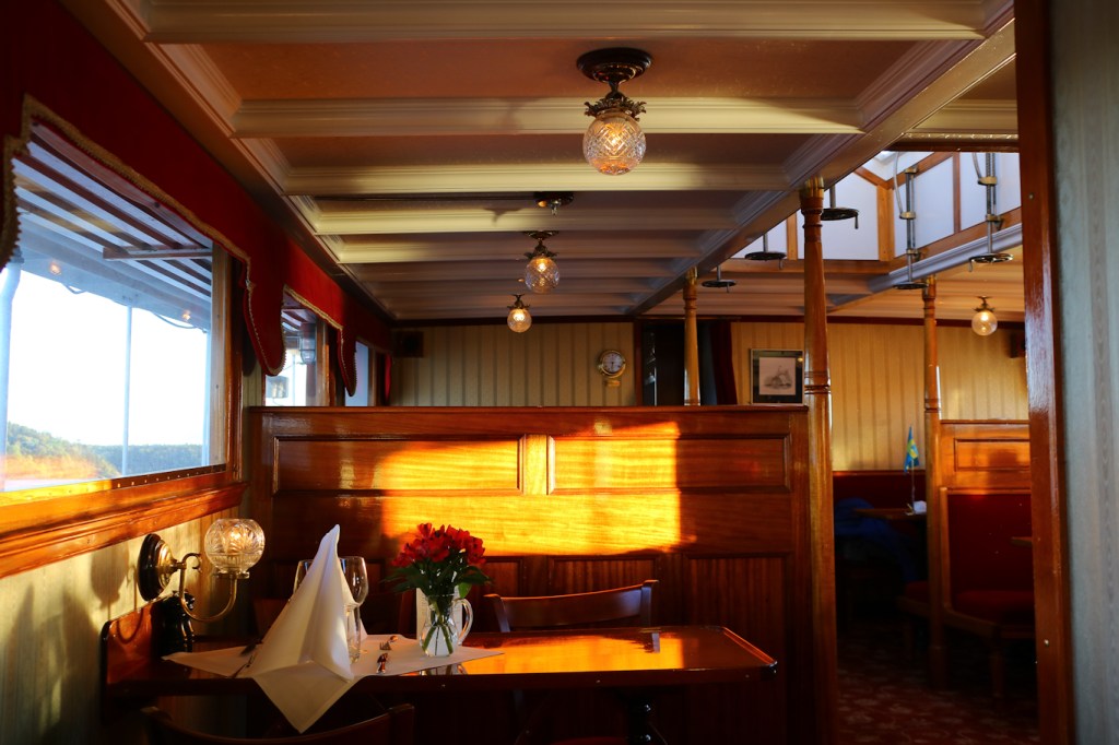 Säsongsavslutningen med de klassiska fartygen i år var nog den bästa hittills på flera sätt. Ett fantastiskt sensommarväder bjöd till underbara resor med såväl ångfartygen Storskär och Norrskär samt motorfartyget Västan (inte helt okänd som min favorit). Bilden visar matsalen på Storskär som jag aldrig satt min fot i innan sista resan in från Möja då jag efter Vaxholm slog mig ner för en måltid. Jag hade lovat en av servitriserna detta tidigare under året – så det var väl bättre sent än aldrig. 😉