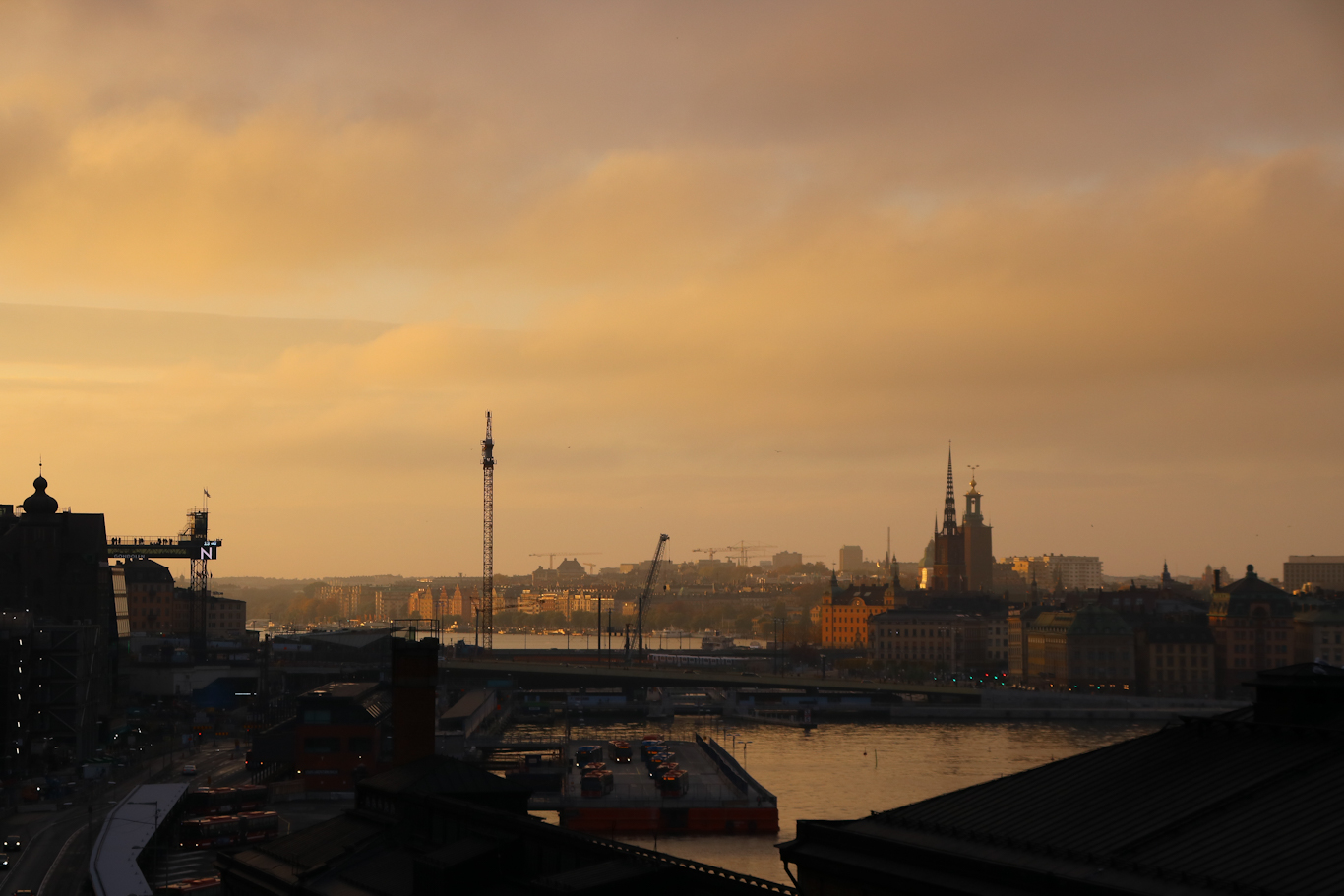 Vilket ljus det bjöds över Stockholm eftermiddagen den 20 oktober då jag gick och strosade runt bland de äldre kvarteren på Söders höjder med gator som Stigbergsgatan och Fjällgatan. Ni kan i vänster bildkant notera folk ovanför Gondolens restaurang vid Katarinahissen som i år öppnats igen efter en lång avstängning.