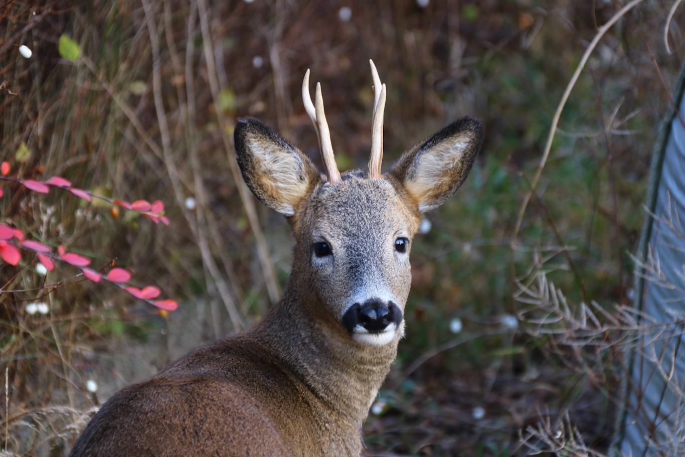På Dalarö finns det ju både deltid och heltidsboende, rådjuren tillhör nog den sistnämnda kategorin… Detta nära möte skedde den 19 november på nedre delen av Wallinvägen, där denna bock plus en get strosade i en trädgård. Jag var själv på väg upp till Lotsberget under en promenad där jag först besökt landstället för ett ärende.