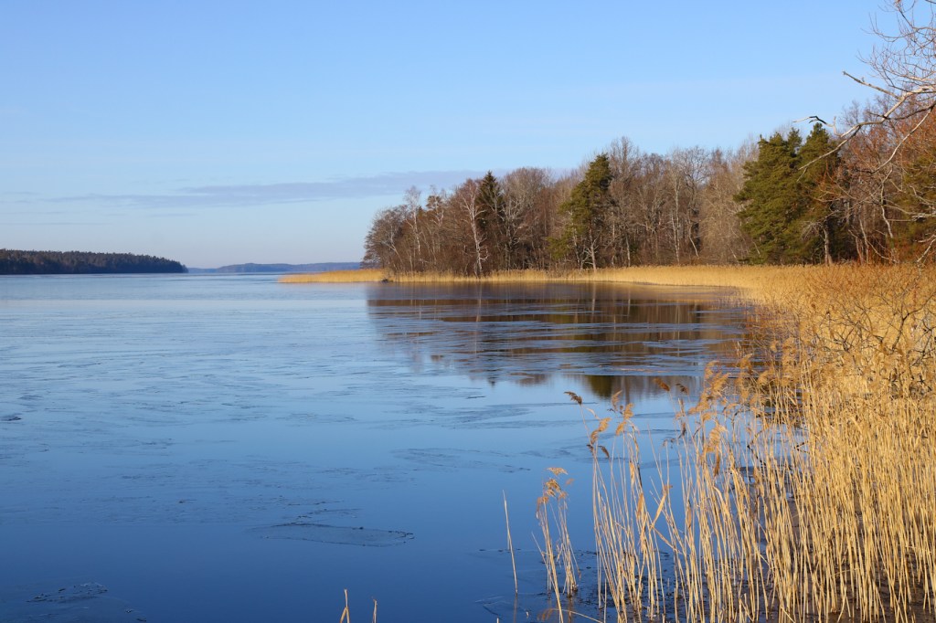 Fjärden utanför Hovgården bär inte helt ologiskt namnet Hovgårdsfjärden. Ett tunt lager is hade lagt sig över stora delar den här februaridagen. Dock inte tjänligt för skridskoturer direkt…