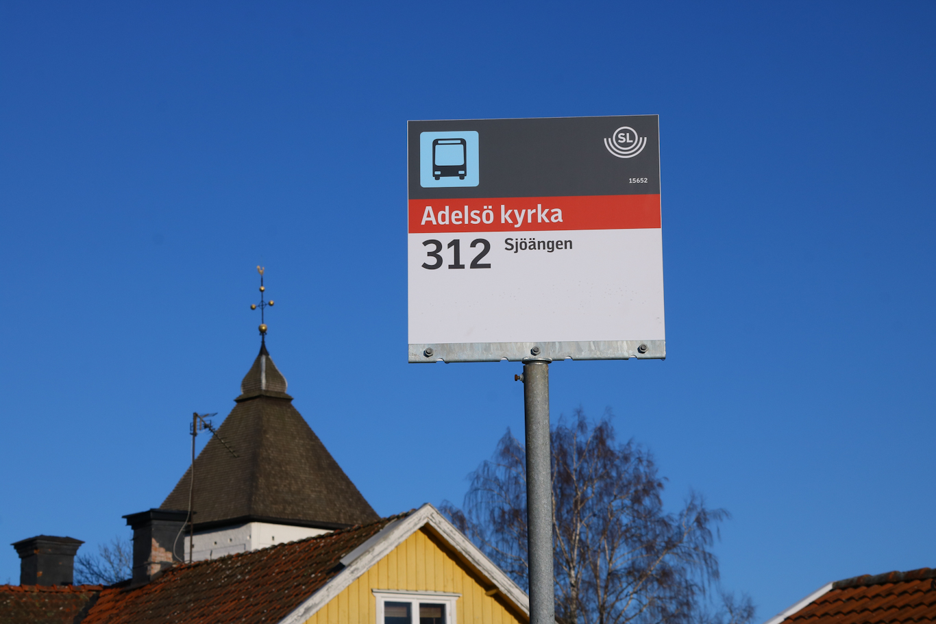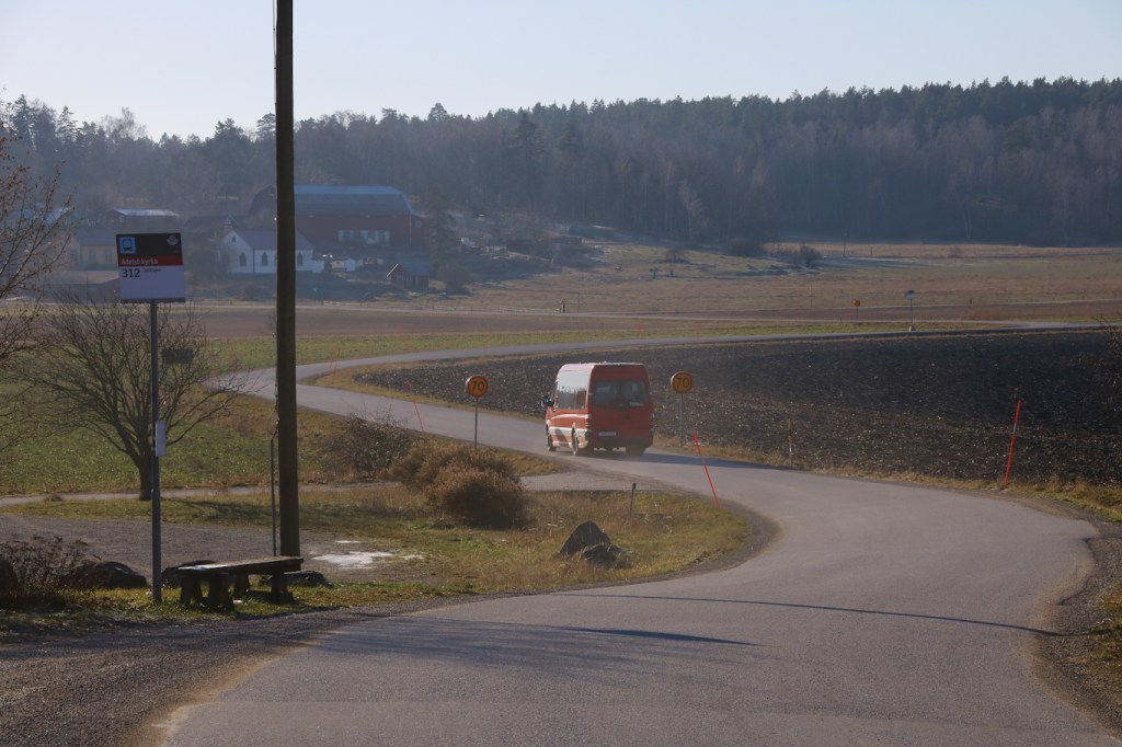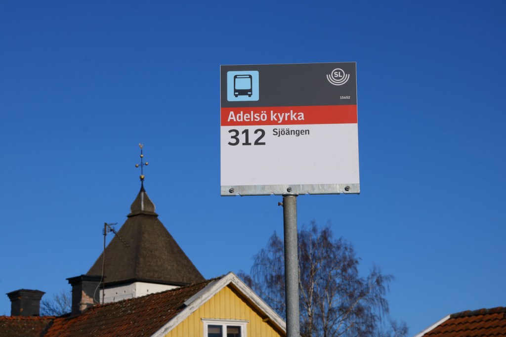 Jag gick av vid Adelsö kyrka, ca 3 kilometer söder om färjeläget mot Munsö. Adelsön är en stor ö, ca 26 kvadratkilometer till ytan, så det är förståeligt att det finns en busslinje på ön.