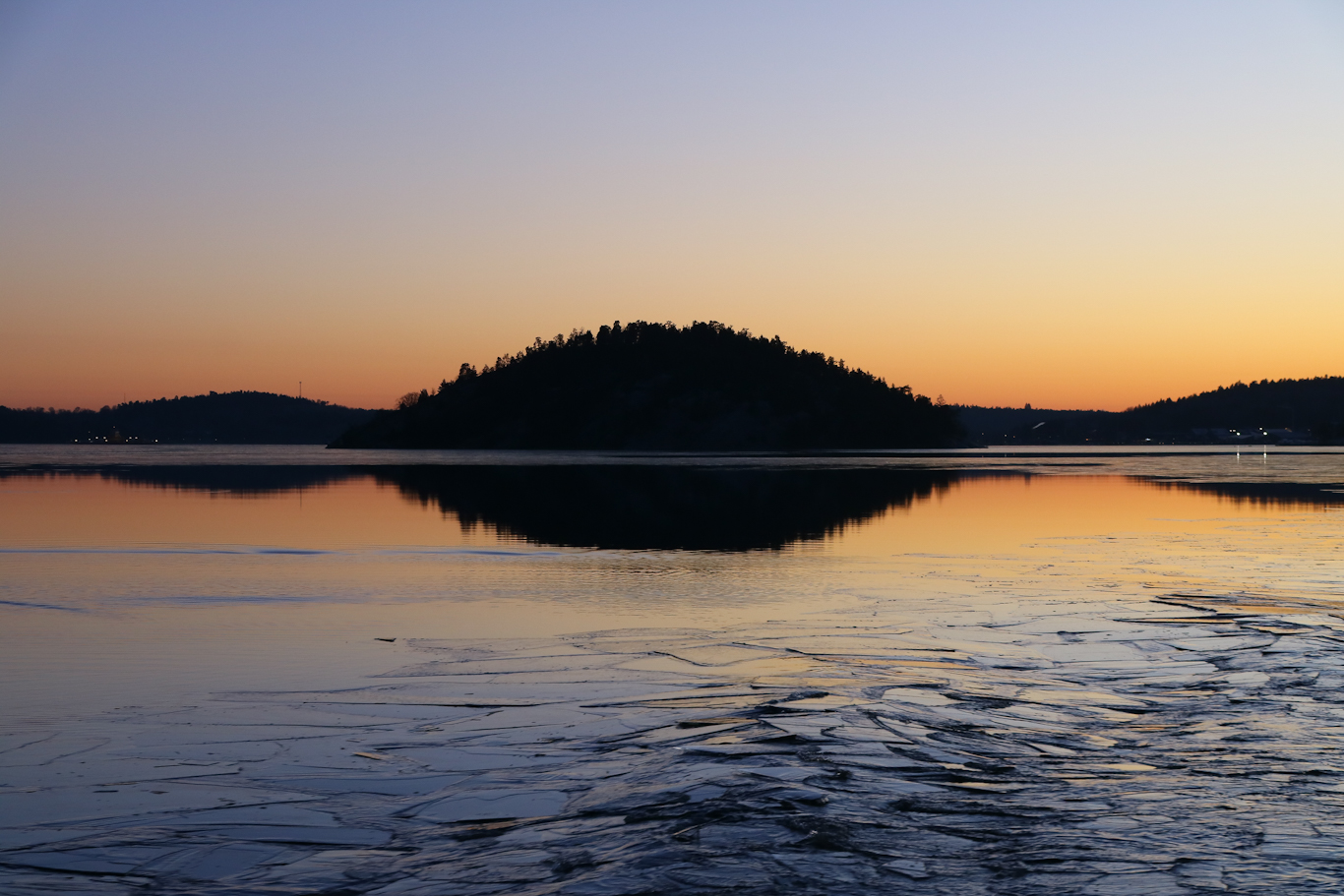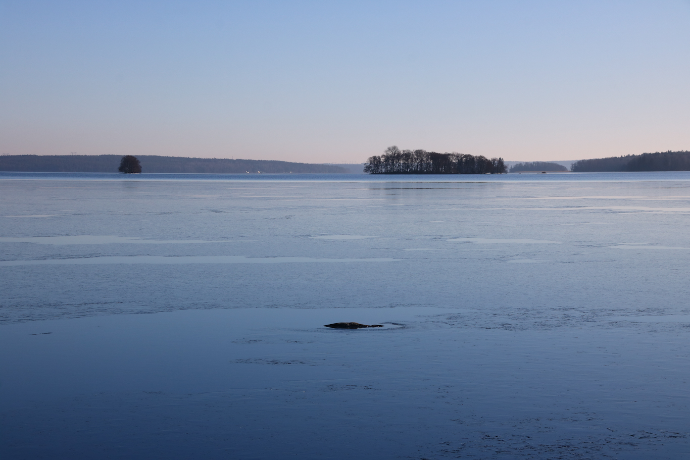 Det blev lite is på Mälaren trots allt denna vinter. Ute på Fiskarfjärden här med härlig spegling av den kuperade ön Estbröte där det ska ligga en gammal fornborg – det historiska temat tar aldrig slut i denna blogg. 😉