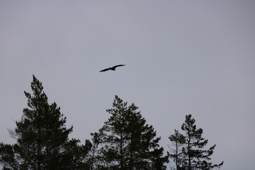 Över trädtopparna på Grinda flög den majestätiska havsörnen.