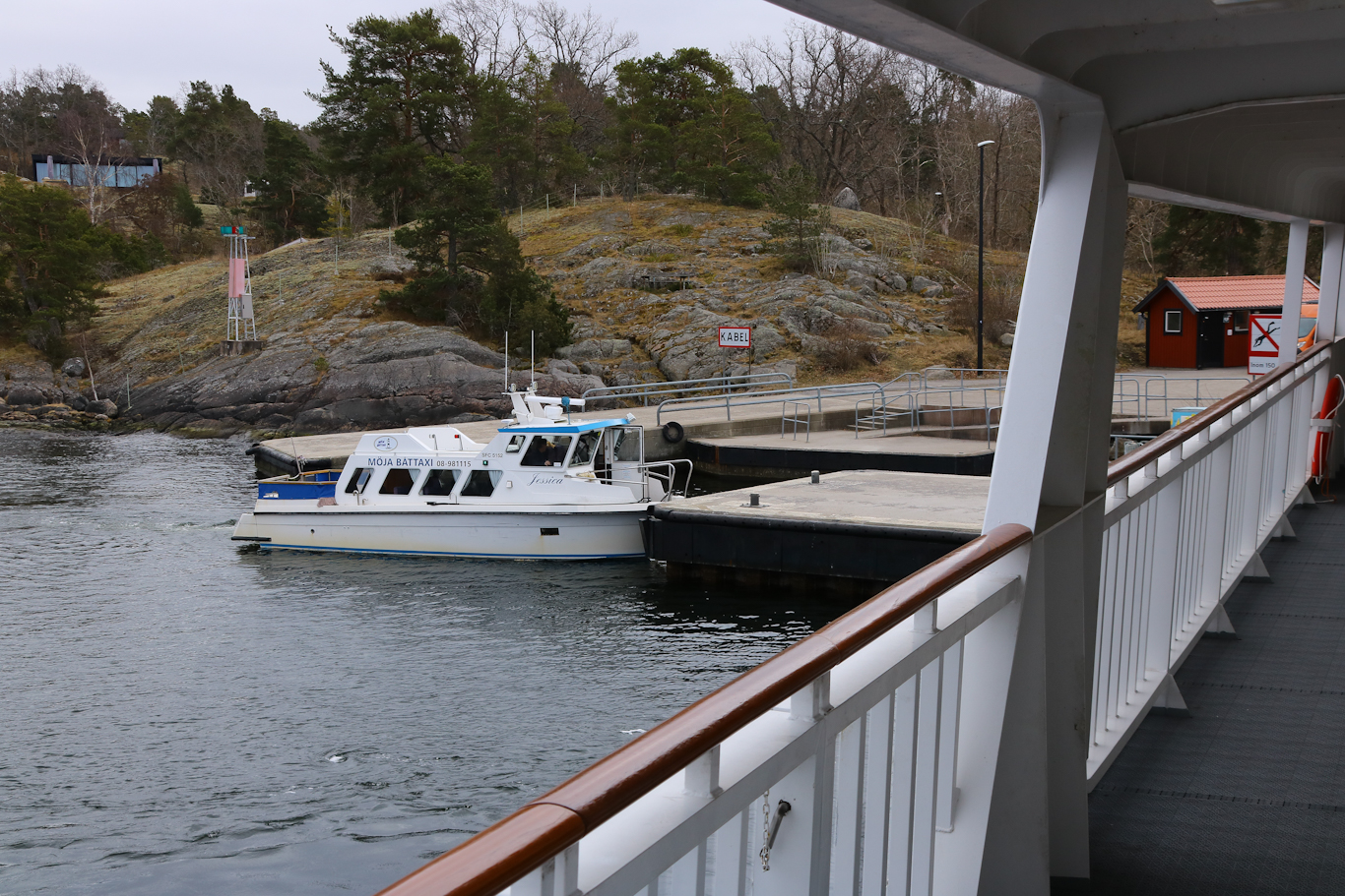 Och här kommer då båten och far förbi Finnhamns brygga, och då blev vi alltså strandsatta på ön tills nästa avgång…