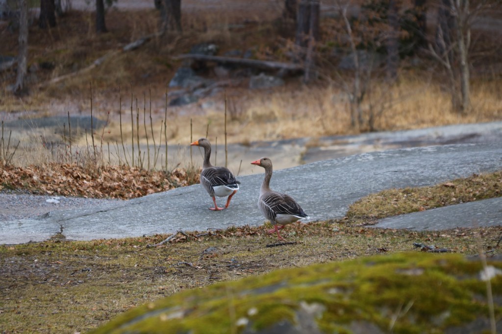 Vi mötte inte särskilt många andra människor på Finnhamn under den dryga timmen vi var iland, men fågellivet fanns där. Grågässen höll allt koll. 😉