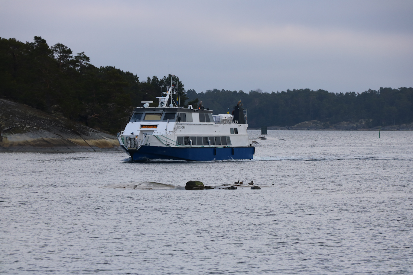 …vilket dröjde ungefär en kvart. 😉 M/S Askungen kom in från Möja på väg mot Åsättra på Ljusterö – en annan så kallad replipunkt. Vi kom dock att stiga av längs vägen – dock på en annan ö än just Ljusterö.
