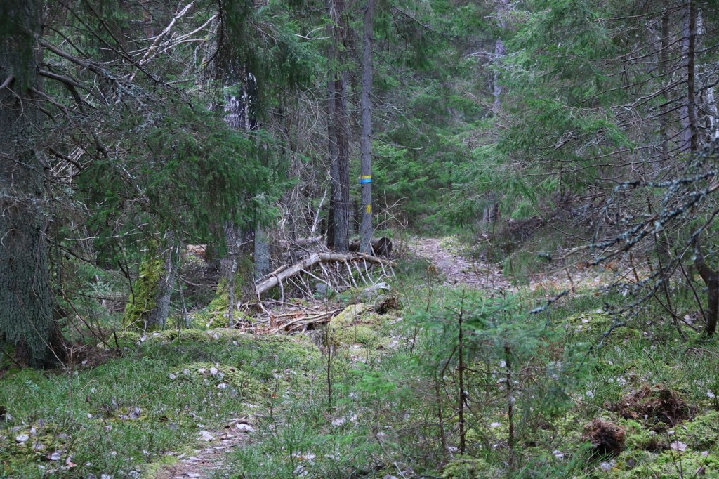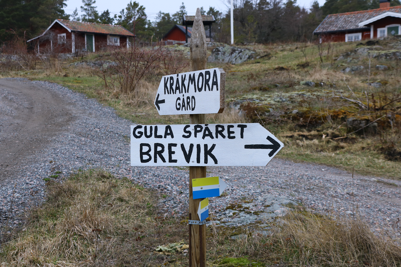 Efter Lättinge så skulle jag ta mig norrut längs den mer västra delen av Ornö. Vid Kråkmora gård gick jag in på det gula spåret – och samtidigt det gulblåa Stockholm Archipelago Trail – för en härlig vandring genom skog och mark.