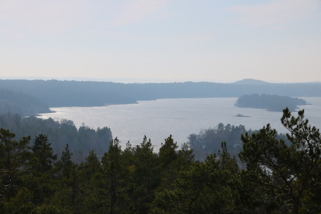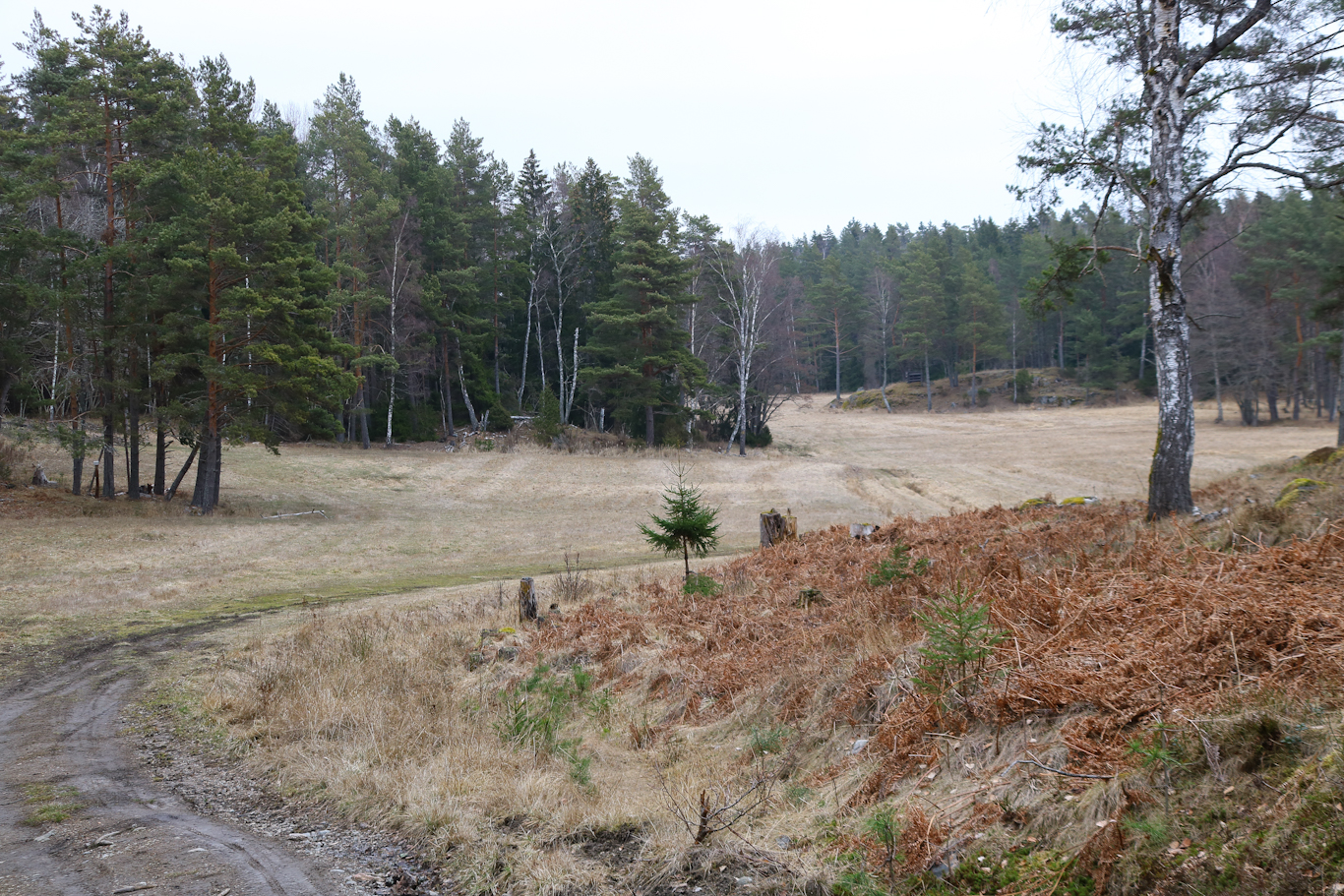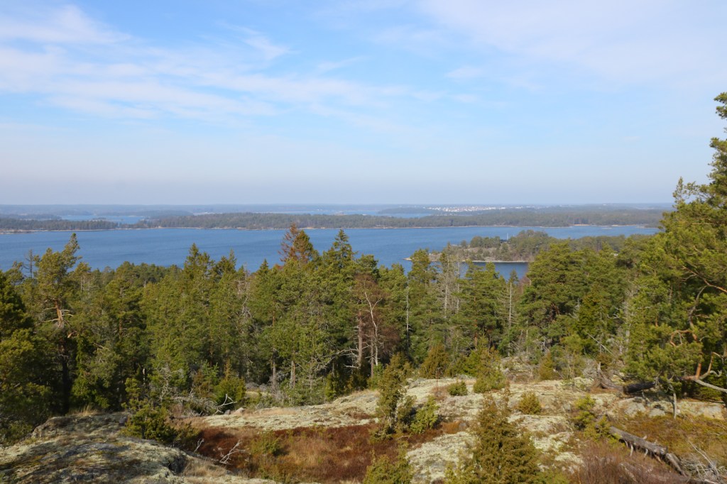 Vy mot söder – och mot Mörbyfjärd. Jag hade söderifrån kunnat vandra närmare vattnet än vad jag gjorde, gått det gula spåret åt andra hållet så att säga. Varianter finns alltså att göra – men det fina med den naturstig jag valde att gå var att den var ganska varierad med både öppna marker och skog. Ornö är verkligen en speciell och fantastisk skärgårdsö.