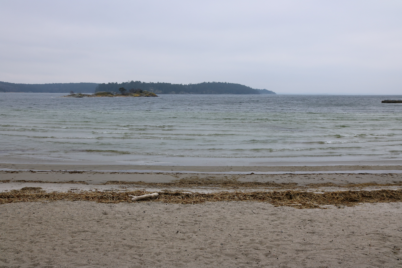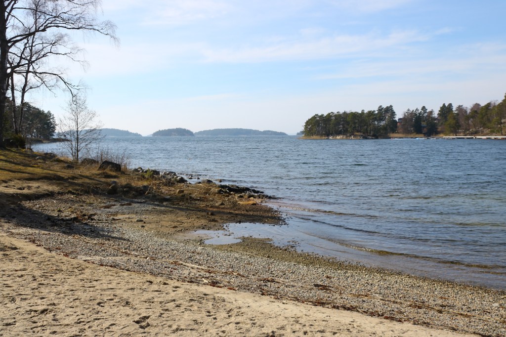Just vid Brevik så avslutades dagens etapp genom skogspartierna. Fortfarande ett par-tre kilometer bort till Hässelmara från därifrån bilden togs vid strandkanten vid inre delen av Mörbyfjärd.