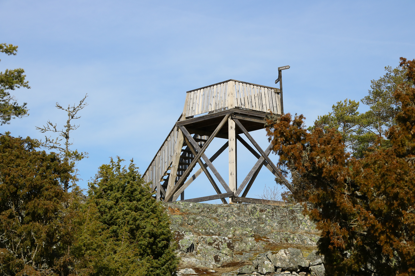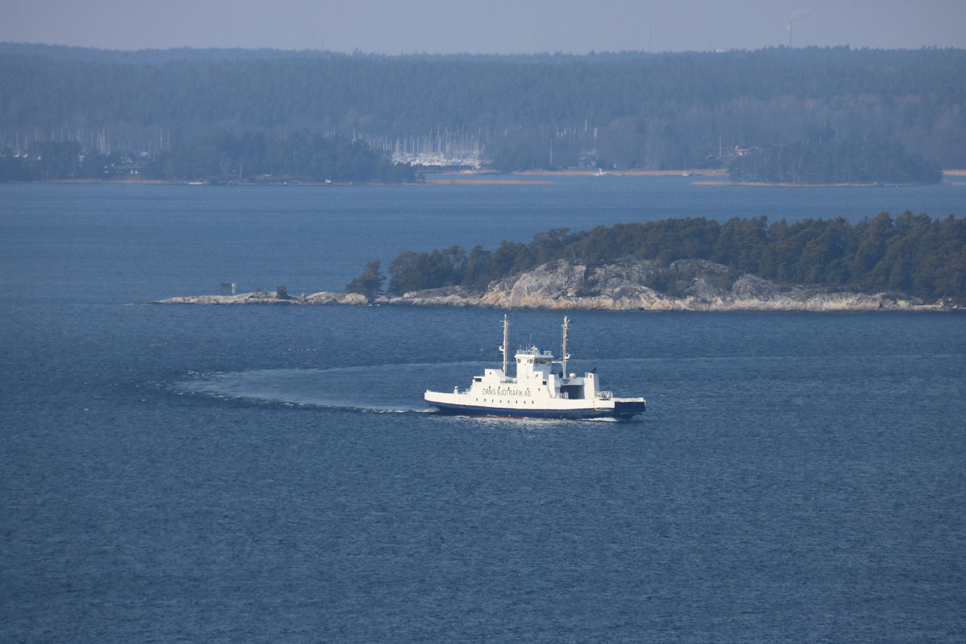 Gamla norska fjordfärjor kan också skådas uppifrån tornet. Jo Ornöfärjan Ebba har sitt ursprung i Norge och trafik på de norska fjordarna och därvid så är det ett rätt bastant bygge då det förstås kan bli sina vädermässiga utmaningar vid norska kusten.